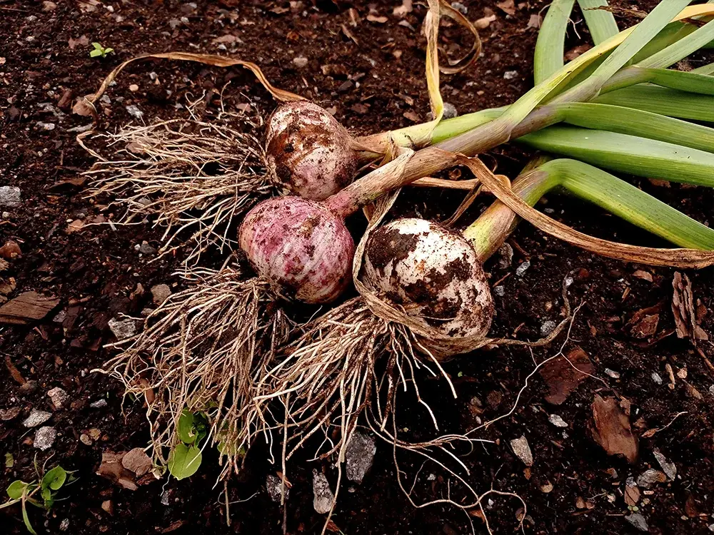 Conseil : Si vous désirez planter au printemps, faites pré-germer les bulbes d'ail à l'intérieur (ceci est simplement possible dans un verre de jacinthe sur de l'eau et en les repiquant lorsque de bonnes racines et un bon feuillage se sont formés) elles vous seront tellement reconnaissantes qu’elles vous offriront d’avantage de gousses.
