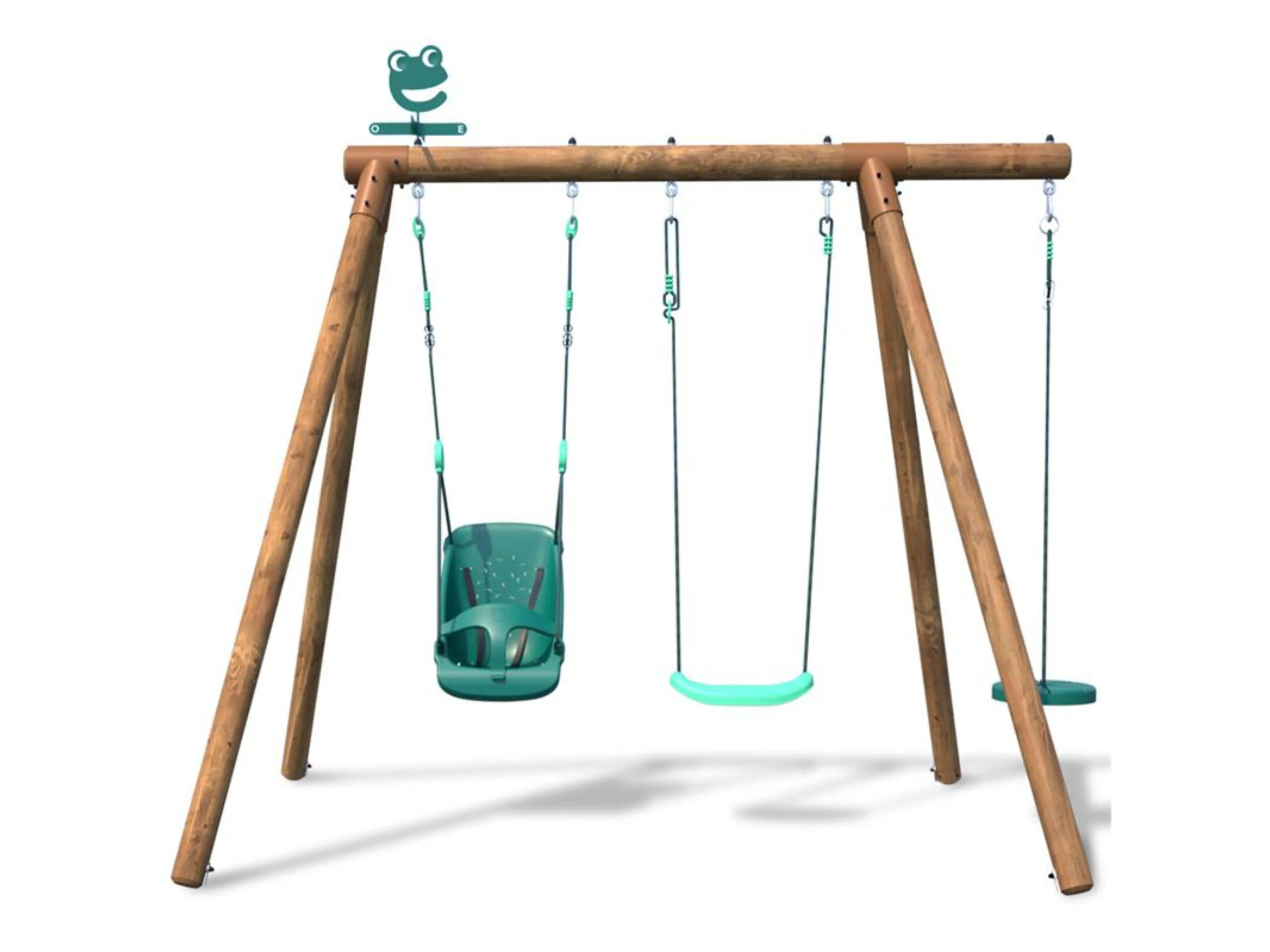 Avec la balançoire Tiago, trois enfants peuvent s’amuser en même temps ! Cette balançoire en bois est parfaite aussi bien pour la prunelle de votre petit œil que pour les plus jeunes de la famille. La balançoire est équipée d’un siège pour bébé, d’une balançoire et d’un disque, ce qui offre de nombreuses options de jeu pour chaque enfant.