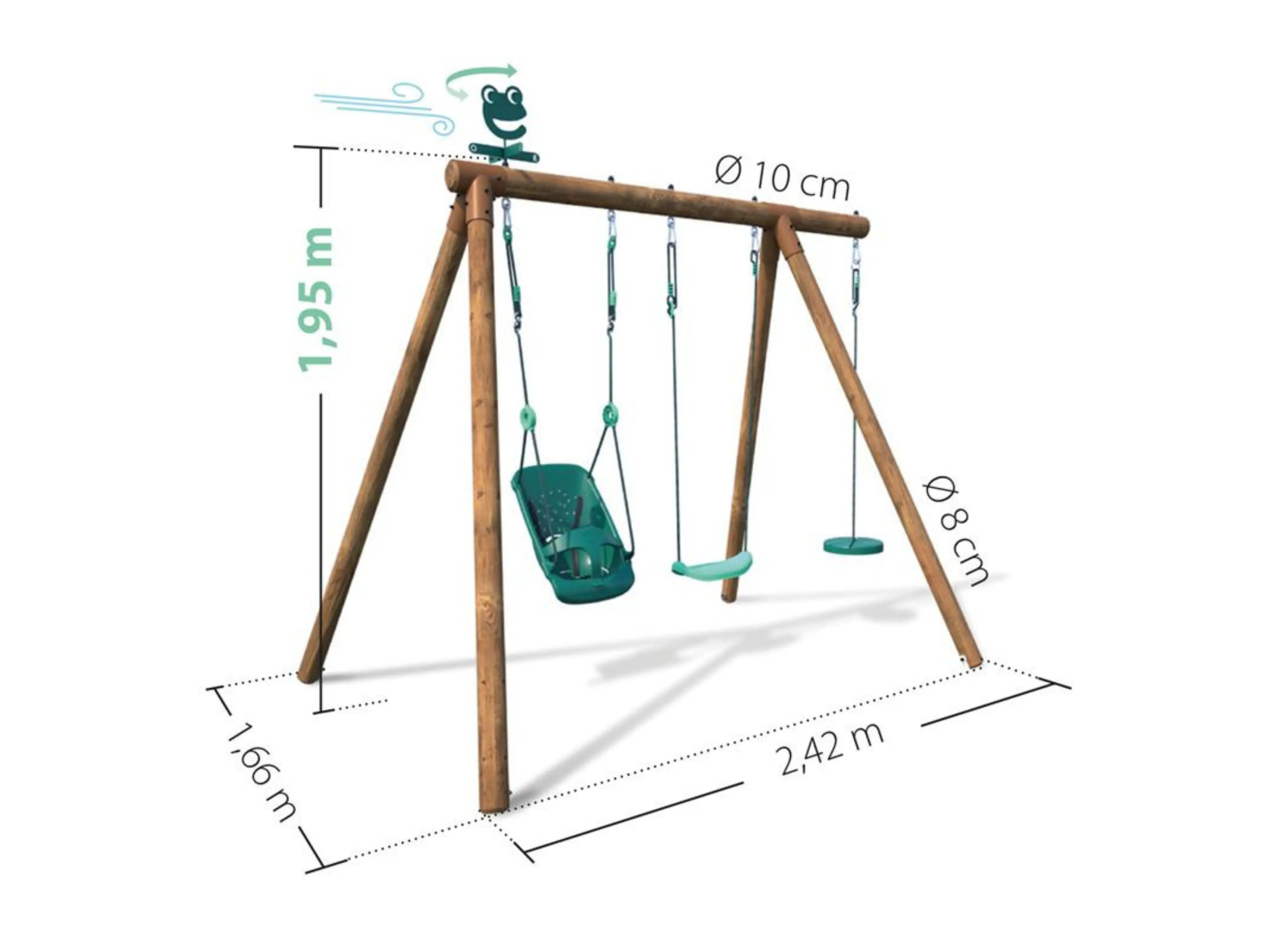 Balançoire Tiago - 242 x 166 x 195 cm - bois - jusqu’à 3 enfants