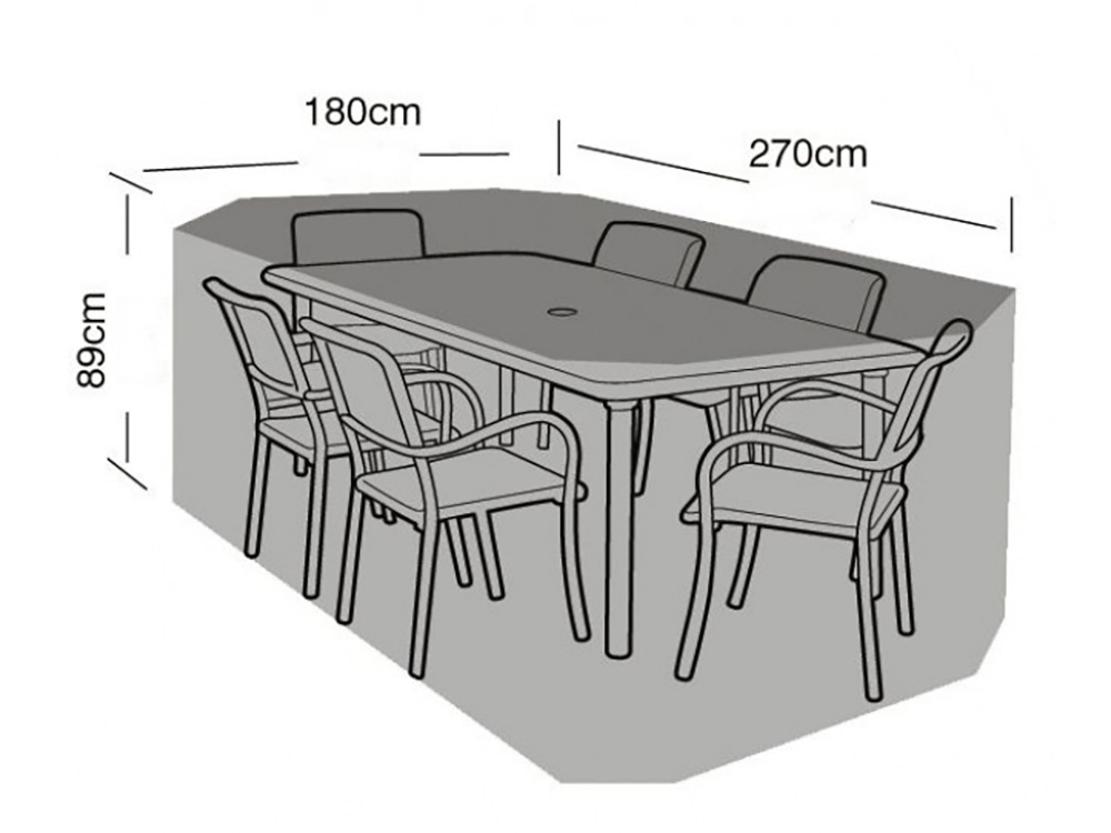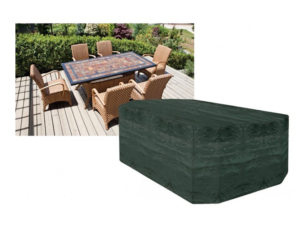 Housse de protection de meubles de jardin pour une table et six chaises. Une protection qui conserve votre mobilier en excellent état d'année en année.