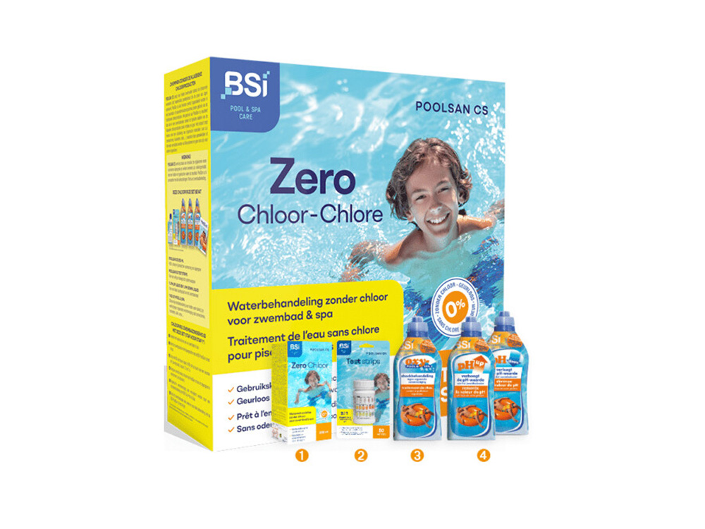 Poolsan Zero chlorine kit débutant pour traiter l'eau de votre piscine ou de votre spa sans utiliser de chlore.