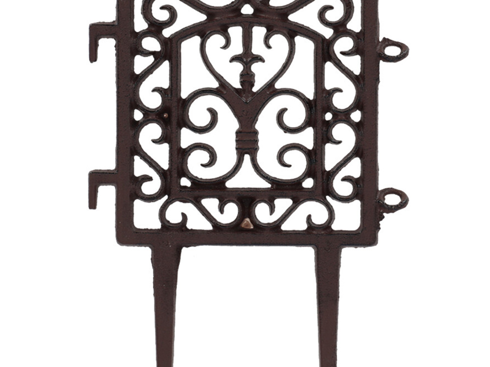 Une élégante clôture en fonte d'Esschert Design pour séparer les différentes sections de votre jardin. Parfaite pour délimiter des parterres de fleurs, un coin à herbes ou comme séparation entre la pelouse et un chemin.