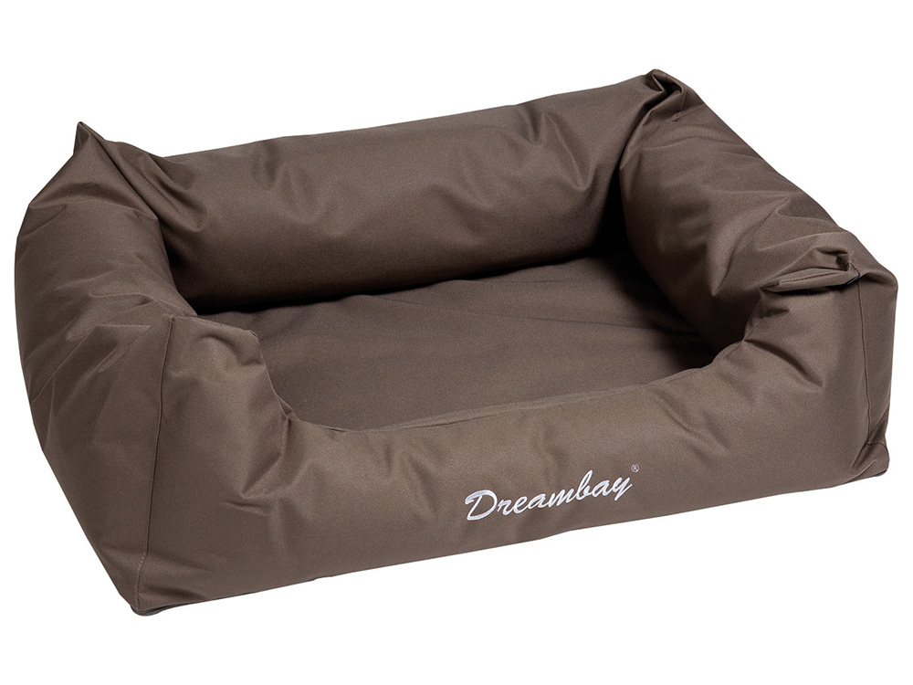 Les coussins robustes du lit Dreambay offrent un soutien parfait à votre chien pendant son sommeil. L’extérieur du coussin pour chien est fait d’un tissu hydrofuge qui est également respirant. Sur la couverture, il est écrit « Dreambay ».