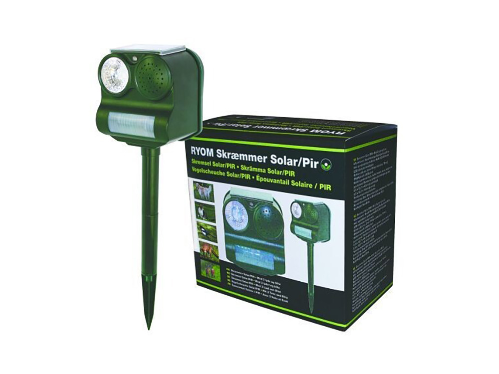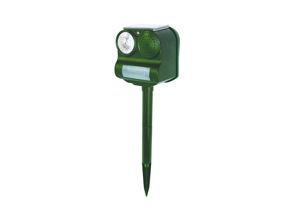 Répulsif solaire pour dissuader les animaux indésirables dans le jardin. Le répulseur solaire produit de la lumière et du son, comme des coups de feu, des chiens qui aboient et des oiseaux de proie. Éloignez les chats ou les oiseaux de vos arbres fruitiers, bordures de fleurs ou étangs.
