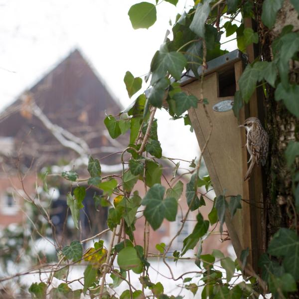 Ce joli nichoir en bois offre à la fois au grimpereau et au pic maçon un excellent endroit pour nicher. Ils utiliseront ce nichoir comme lieu de repos hivernal et pour la nidification. Le grimpereau doit son nom à son comportement : il grimpe le long du tronc d'arbre avec des mouvements saccadés.