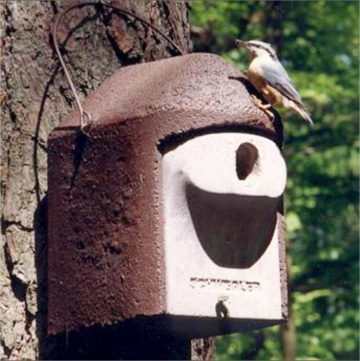 Le béton de bois se compose à 75% de bois et est complété avec des matériaux respirants. Cela garantit un meilleur respect de l'environnement et une plus longue durée de vie. En outre, ce matériau offre une excellente isolation aussi bien en été qu'en hiver. La construction en béton de bois fait en sorte que les piverts ne peuvent pas transformer ce nichoir.