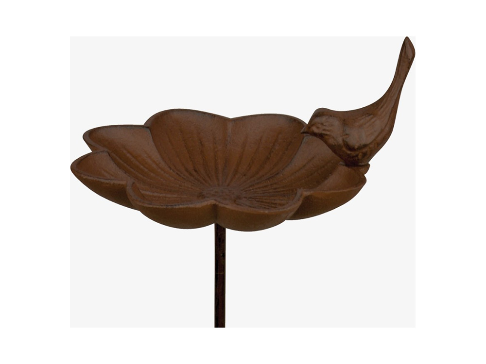 L'ensemble est réalisé en fonte durable et présenté sur un piquet pour disposer la mangeoire au jardin ou dans un pot. Sur la terrasse, le gazon ou le massif.