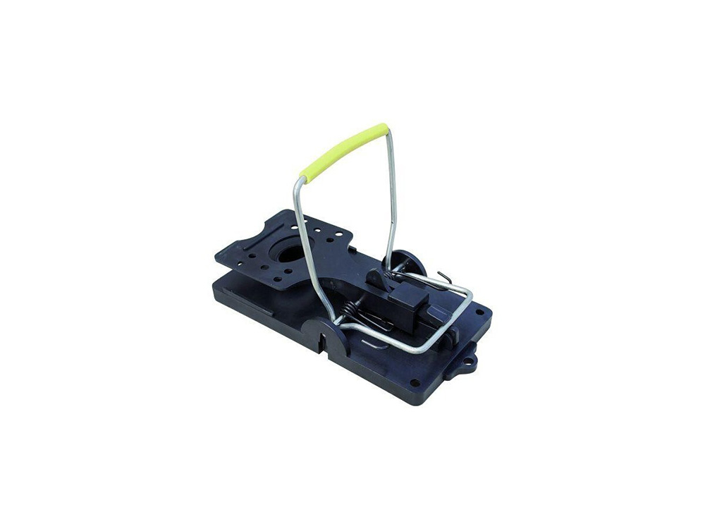 Piège à rats en plastique, très pratique à placer. L'avantage du plastique est qu'il n'absorbe pas d'odeurs et donc qu'il ne va pas effrayer les rats. Ce piège est doté de deux trous pour fixer le piège sur une superficie. Il y a également un oeillet prévu pour éventuellement pouvoir fixer le piège avec un câble métallique.