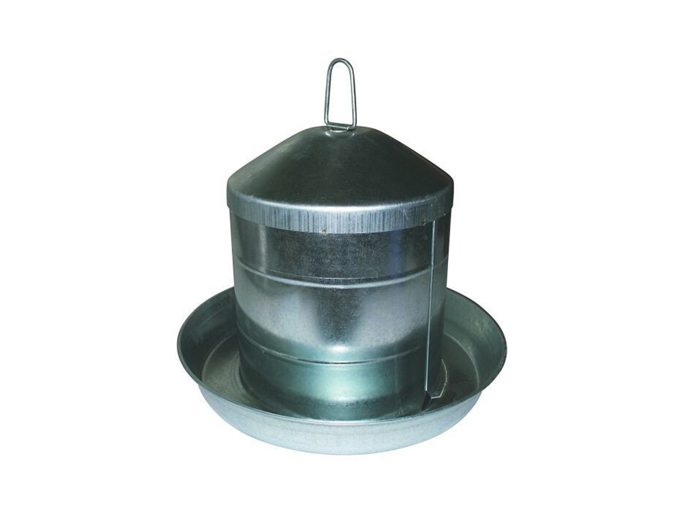 Abreuvoir avec réservoir d’eau pour poules, oies, faisans et autres volailles. Ce réservoir galvanisé garantit que vos animaux de ferme à plumes disposent d’une réserve d’eau suffisante pour rester bien fraîche dans un endroit à l’ombre.