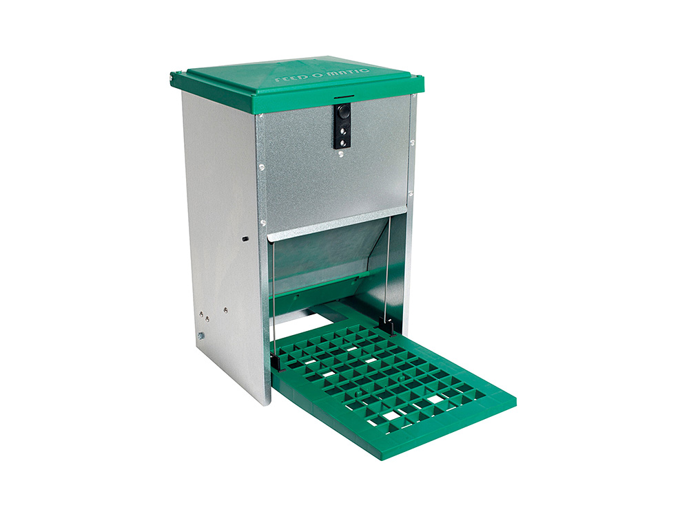 Une pédale de haute qualité et innovante pour nourrir la volaille. Les poules n’ont accès à la nourriture que lorsqu’elles montent sur l’étagère de l’escalier de la mangeoir. Le poids de la volaille ouvre le rabat au bas de l’abreuvoir, après quoi les poulets ou les faisans peuvent manger. Lorsque les animaux quittent l’escalier, le rabat se referme de sorte que les oiseaux de jardin, pigeons sauvages ou petits rongeurs n’ont pas accès à la nourriture.