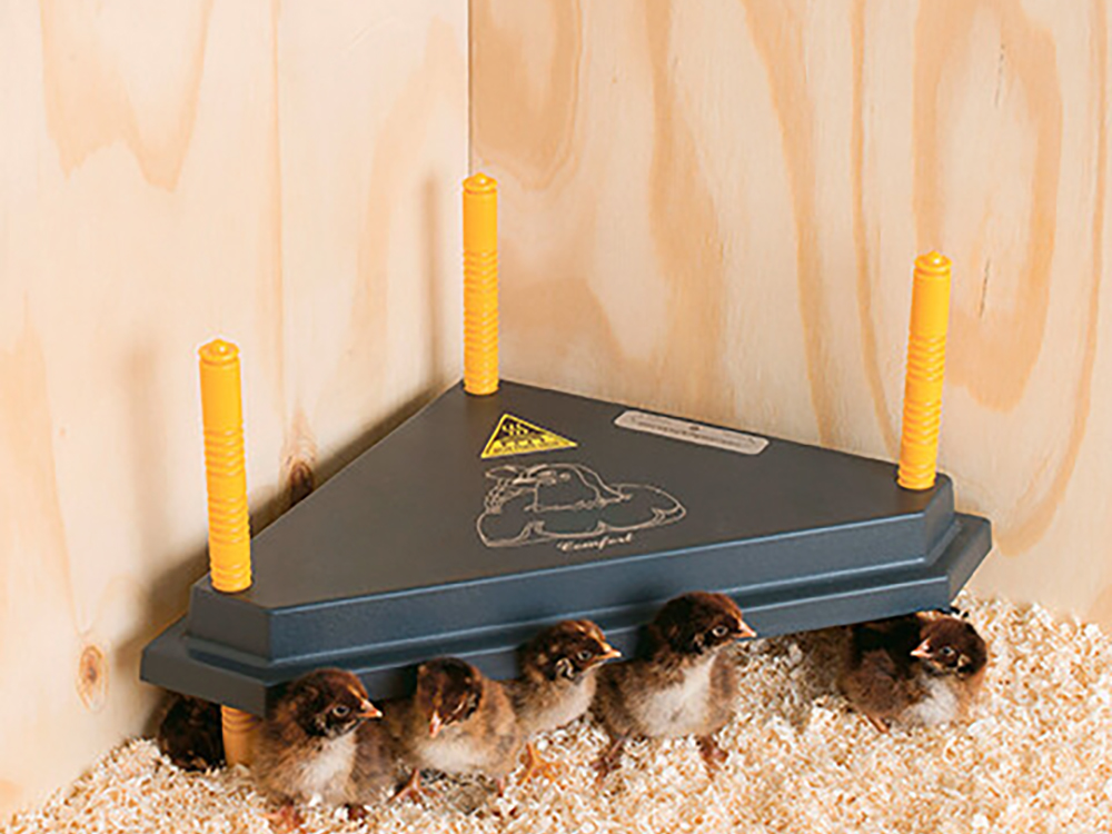 Le modèle d’angle de 30 x 30 cm convient à 15 à 20 poussins.