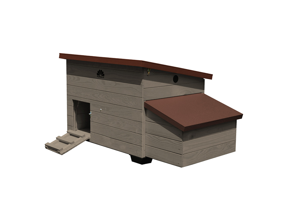 Bungalow Small est notre plus petit modèle avec un toit plat, adapté à 1 poulet grand à 3 poulets de taille moyenne.