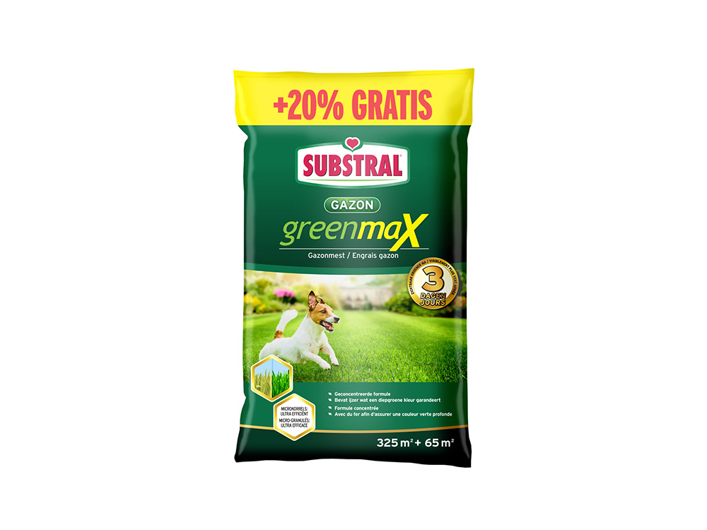 Grâce à l'action rapide de GreenmaX Substral, votre gazon sera visiblement plus vert en à peine 3 jours. Le vert profond est provoqué par la présence de fer et des oligo-éléments essentiels. Cet engrais de haute qualité peut être utilisé sur n'importe quel type de gazon. Les mini-granulés sont garants d'un épandage optimal et d'une application sans poussières.