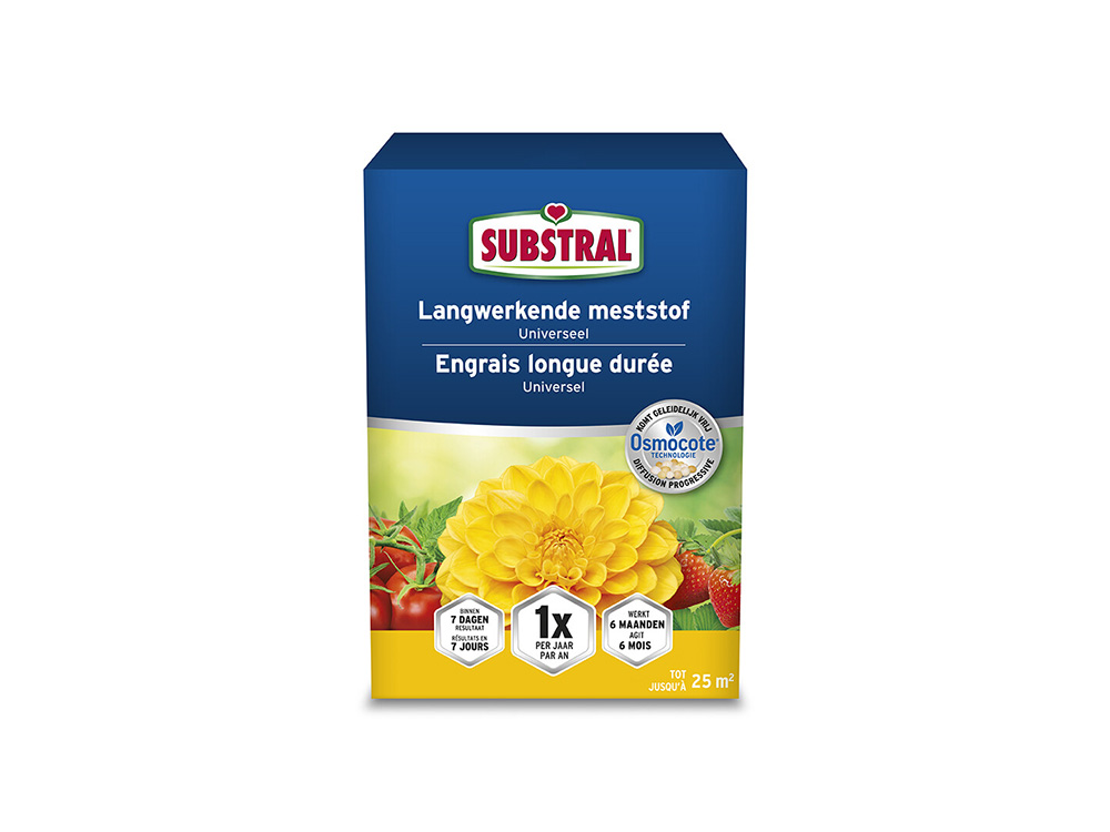 L'engrais Osmocote de Substral donne un maximum de résultats avec un minimum d'efforts! Ce nouvel engrais universel a été spécialement conçu pour les fleurs, les arbustes et les arbres, en pleine terre et en pots, mais il peut également être utilisé dans le potager pour donner un coup de pouce à vos fruits et légumes.