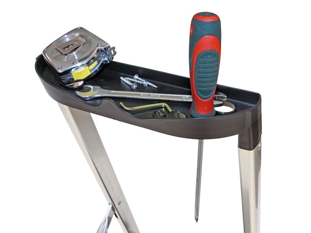Pour maintenir une bonne prise sur les marches aussi longtemps que possible, les profils sont traités avec une couche anti-saleté . Cela vous permet de travailler en toute sécurité et confiance, même par temps humide. L’échelle à marche électrique en aluminium est également équipée d’un porte-outils pratique, situé en haut de l’échelle. Ainsi, vous aurez toujours vos outils nécessaires à portée de main.