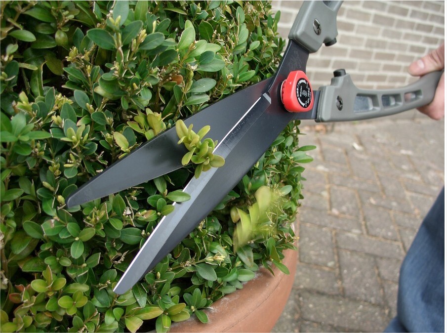 Cette cisaille de qualité professionnelle est ultra légère et équipée de garnitures anti-chocs en caoutchouc. Elle est idéale pour la taille de forme de vos buis, mais également pour d'autres plantes, comme des conifères ou, par exemple de la lavande!