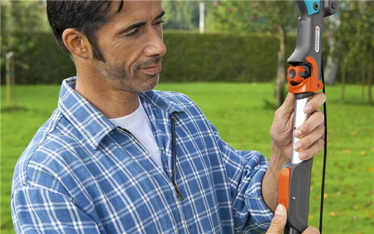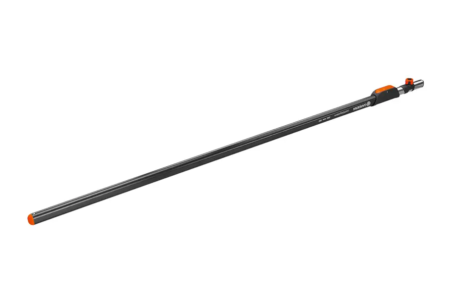 Le manche télescopique de Gardena peut, grâce au système d'encliquetage, être déployé par étapes de 26 cm, de 160 à 290 cm. Cela rend possible le travail confortable jusqu'à une hauteur d'environ 5 mètres, en fonction de la situation de travail et de la taille de l'utilisateur. Le manche télescopique est compatible avec tous les outils combisystem de Gardena.