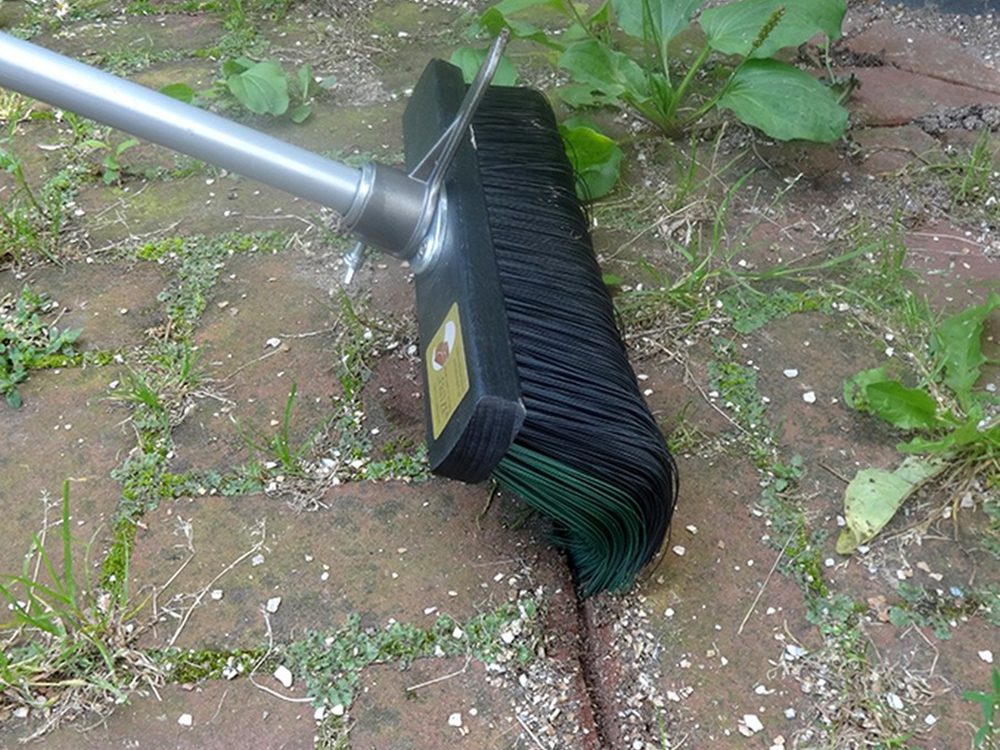 Un balai qui dispose d'un atout supplémentaire avec son grattoir intégré. Grâce à lui, vous grattez la mousse et les mauvaises herbes présentes dans les joints de votre allée ou terrasse. Puis, vous retournez la brosse et vous balayez les restes. De cette manière, les surfaces pavées sont nettoyées en un tour de main. Avec un seul outil.
