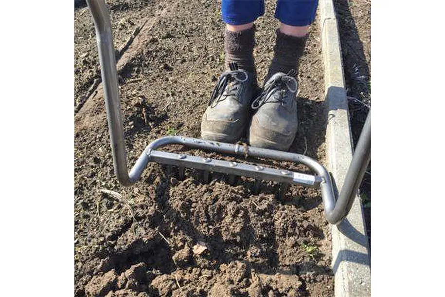 Les formes compactes et arrondies font de cette grelinette l'outil idéal pour un travail dans la serre. En un minimum de temps, les espaces de semis seront aérés et remis en condition pour la prochaine saison!