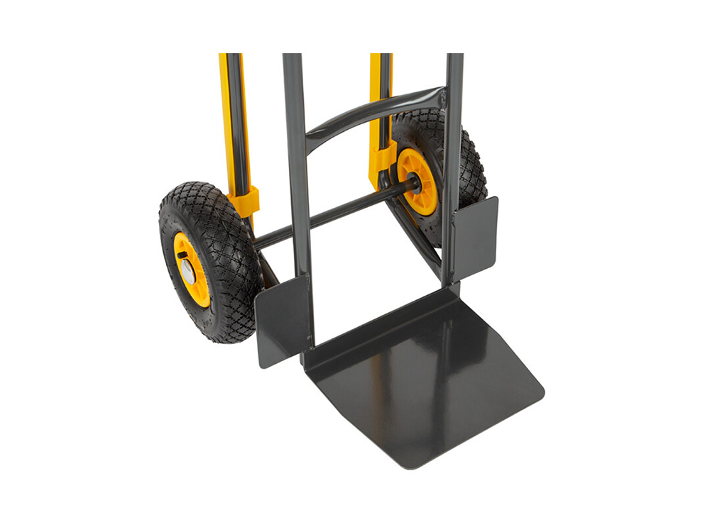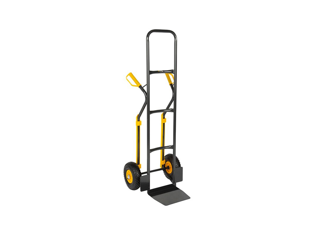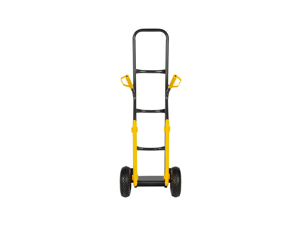 Ce diable peut transporter des charges allant jusqu'à 200 kg. Il est équipé de 2 pneus pneumatiques et de 2 poignées en plastique jaune.