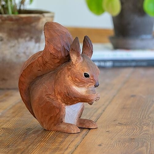 Ecureuil roux en bois de tilleul - Sculpté à la main