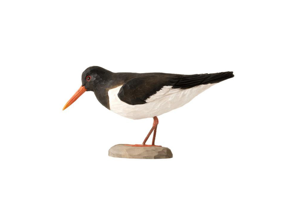 Une magnifique représentation d'un échassier, réalisée de façon artisanale en bois : la pie de mer (Haematopus Ostralegus).