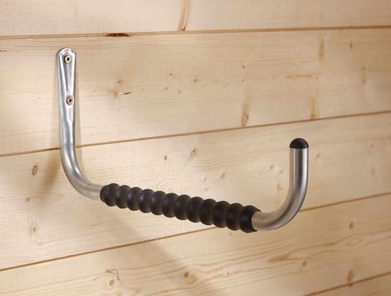 Le crochet mural XXL constitue une solution d'aide à la fois solide et variée pour le rangement de vélos, d'échelles ou de matériel de jardin. Le crochet mural est muni une bande de caoutchouc antidérapante qui offre une proctection bienvenue contre les griffes et autres dégâts possibles.