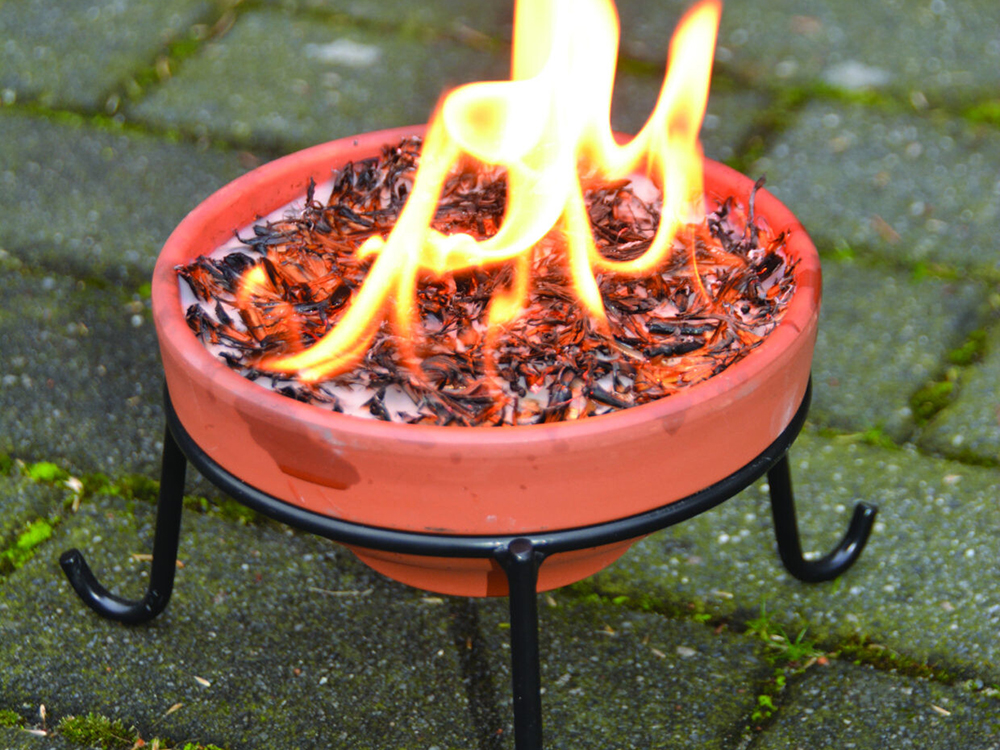 Ce support en acier d’Esschert Design offre un lieu sûr et surélevé pour brûler un brasero [product=3]31079[/product], créant une flamme atmosphérique et pleine flamme. Grâce au support, le pot peut être placé n’importe où dans le jardin. Cependant, assurez-vous qu’il y ait suffisamment d’espace autour du pot.