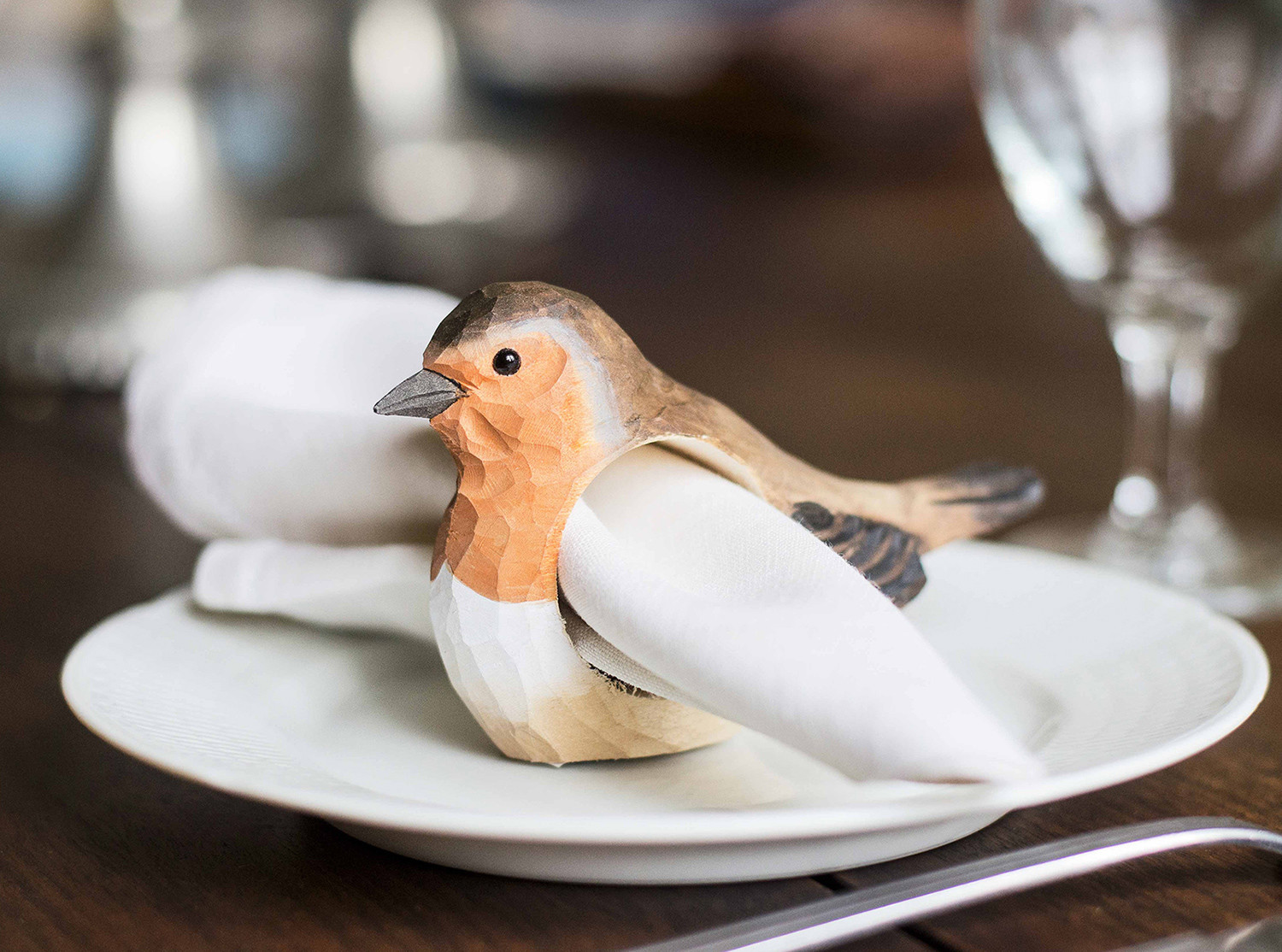 Cette bague de serviette originale complète n’importe quelle table de fête. Avec la forme d’un joli oiseau ou mammifère de jardin , la bague apporte une touche de nature à l’intérieur. Chaque animal a une apparence réaliste et incarne parfaitement le personnage, comme si l’animal levait les yeux de la table. Grâce à leur base plate, ils restent debout sans effort.