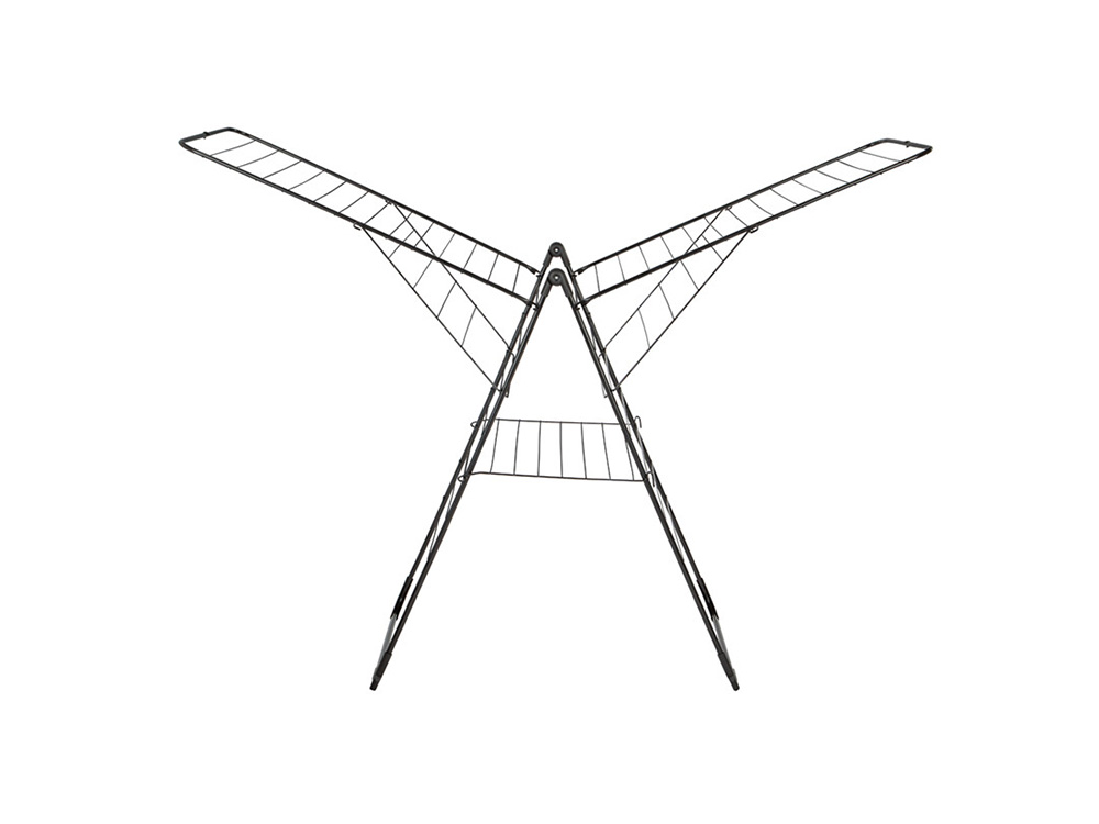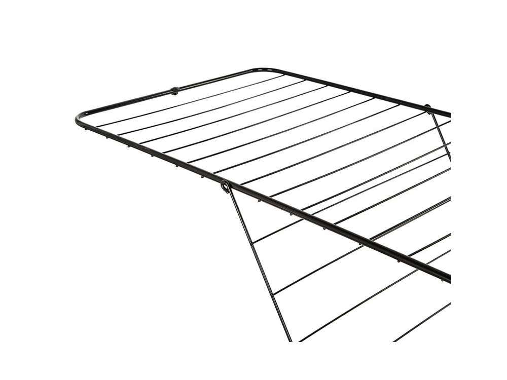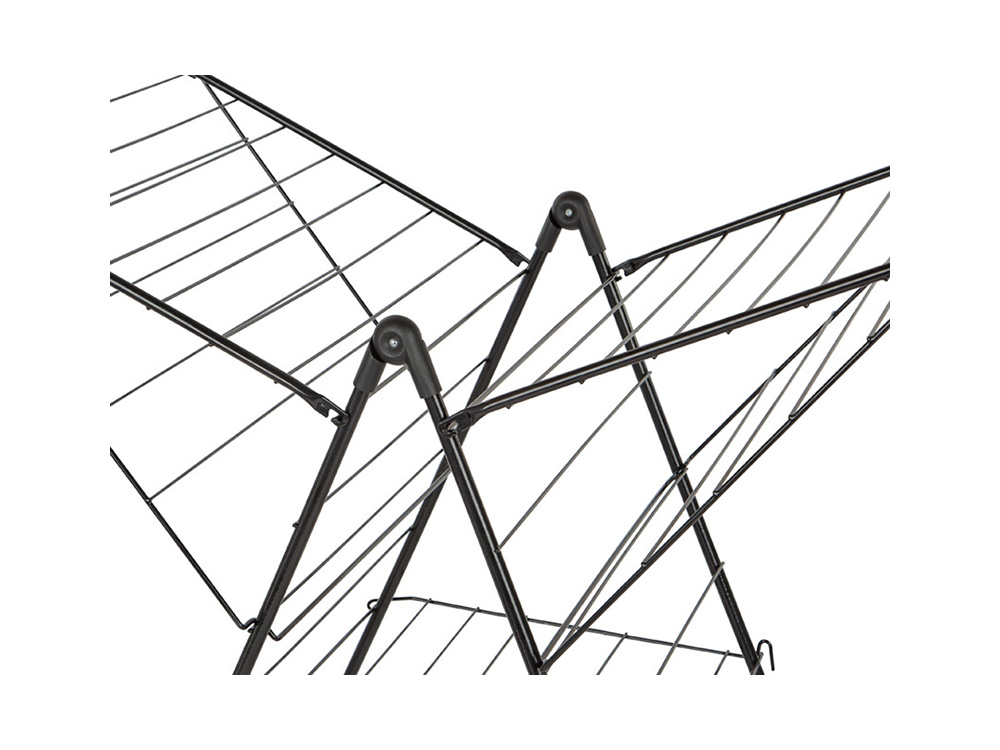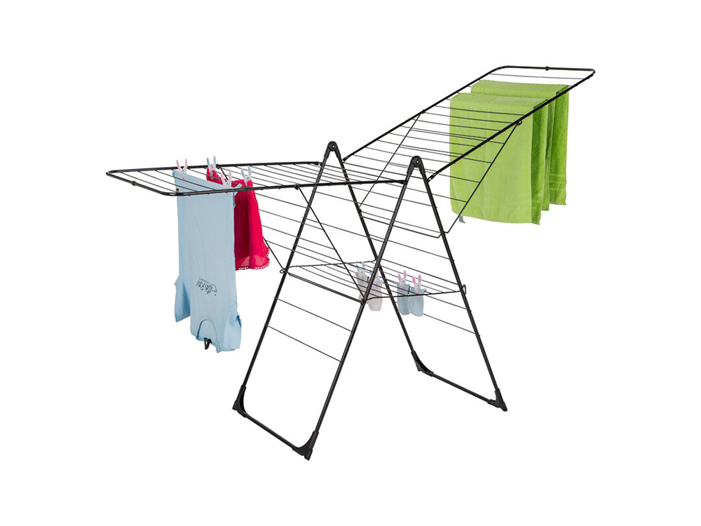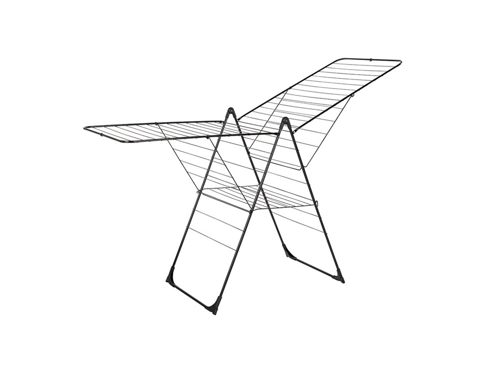 Ce grand séchoir modèle T ne possède pas moins de 33 mètres de fil à linge, adapté aux vêtements courts et longs, serviettes et draps. Il peut être facilement déplié et rangé de manière compacte une fois le linge sec. Grâce aux charnières robustes et aux pieds renforcés, le séchoir est toujours stable, même lorsqu'il est fortement chargé. Si vous disposez d'un espace limité, le support peut également être replié sur un côté.
