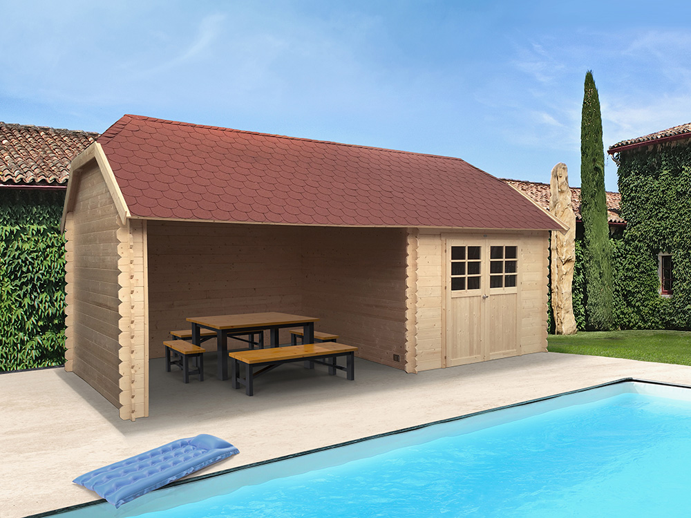 - Une épaisseur de paroi de 28 mm confère à la cabane d’été stabilité et durabilité