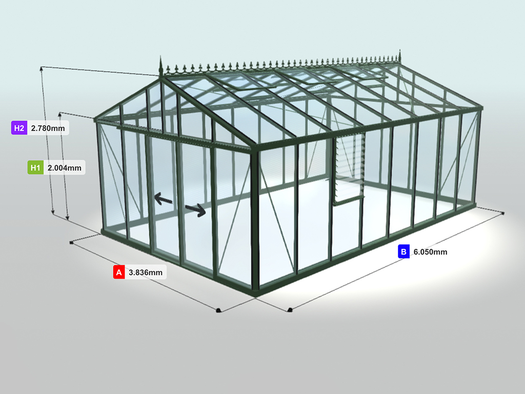 La serre Janssens Helios Master XL est un modèle haut de gamme avec un espace de travail maximal de 23,3 m². La hauteur de gouttière unique de 201 cm vous permet de vous tenir debout et de travailler confortablement n'importe où. La hauteur du faitage est de 278 cm et la pente de toit est de 22°.