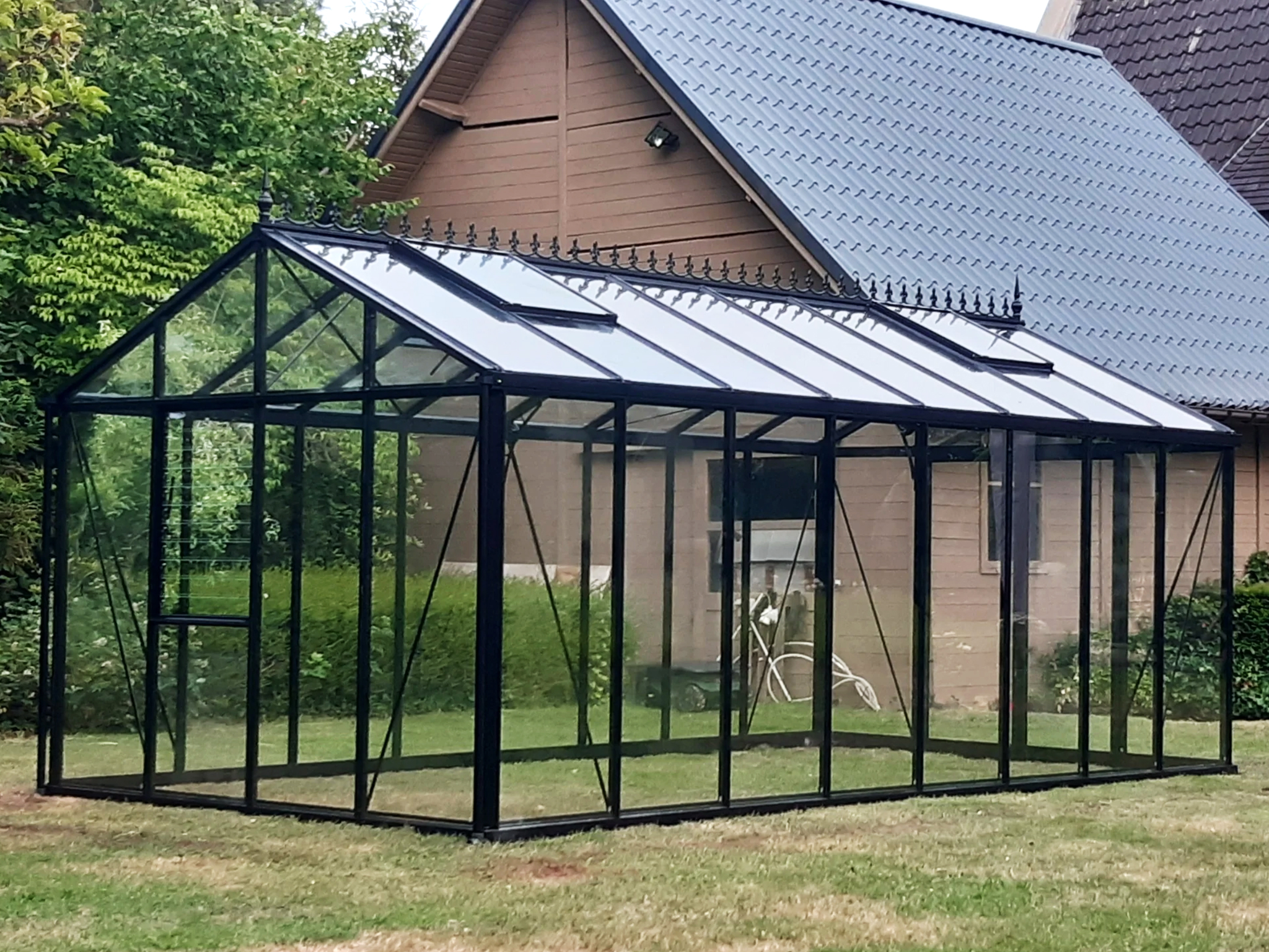 La serre Janssens Master Helios noire est une serre premium offrant espace de travail maximal. La hauteur de gouttière unique de 201 cm vous permet de vous tenir debout confortablement et d'avoir beaucoup d'espace pour travailler.