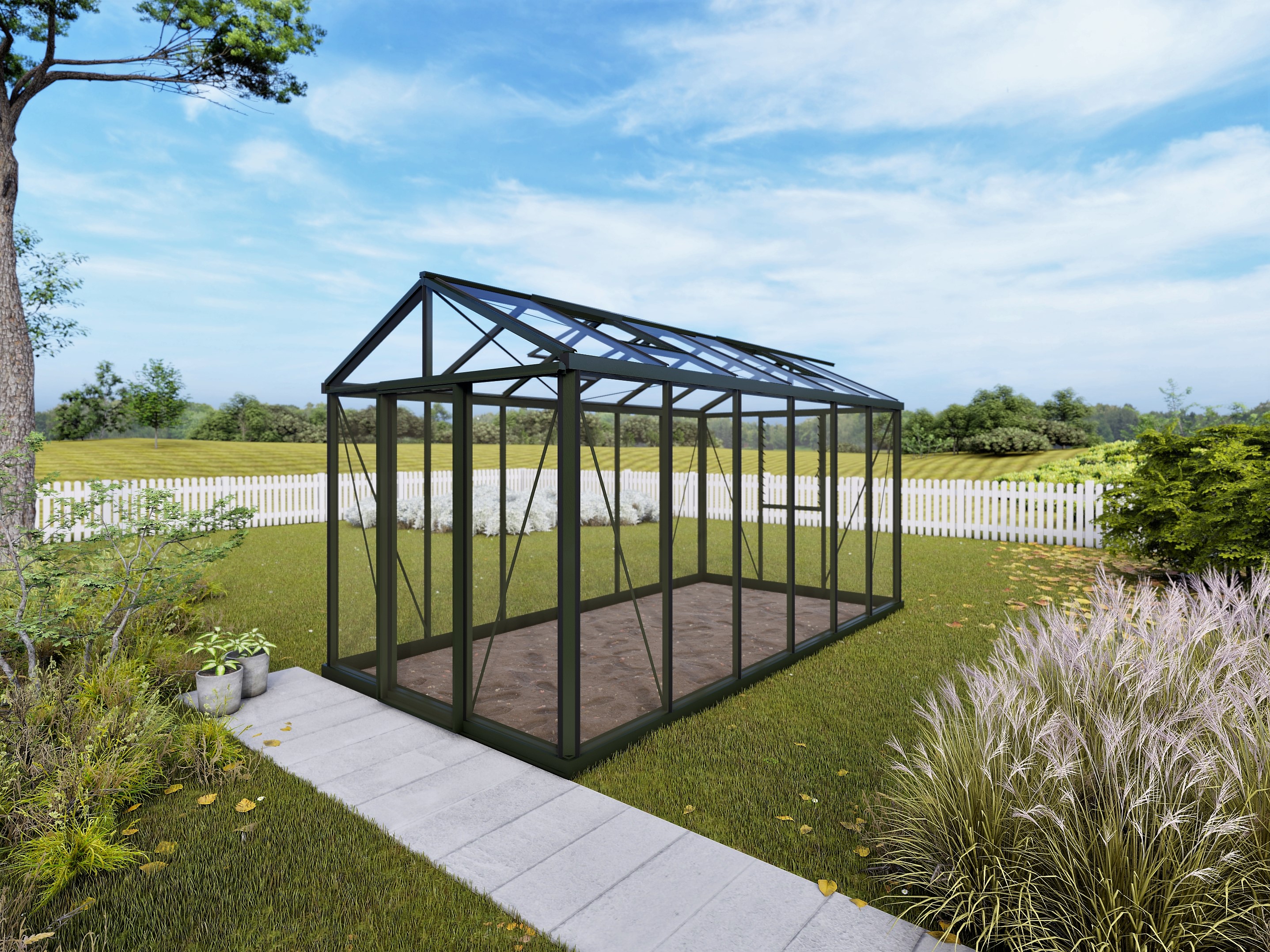 Le vitrage est constitué du verre de sécurité de 4 mm qui assure une luminosité et une isolation optimales. Le verre est fixé par des bandes de caoutchouc, rendant la serre totalement étanche à l'eau et au vent. De plus, la Helios Master est livrée avec un profil de fondation intégré, ce qui signifie que vous n'avez pas besoin de couler une fondation en béton.