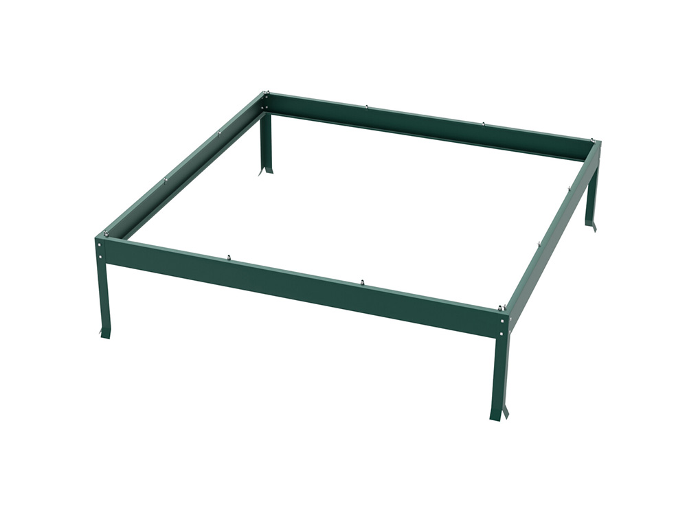 Le cadre est composé de profils en aluminium verd revêtu en poudre. La porte coulissante de 61 cm de large peut être suspendue de manière à s’ouvrir à gauche ou à droite. La serre est également équipée de gouttières intégrées et de fondations dans la structure de la serre. La fondation assure une connexion solide et optimale entre le cadre et la fondation.
