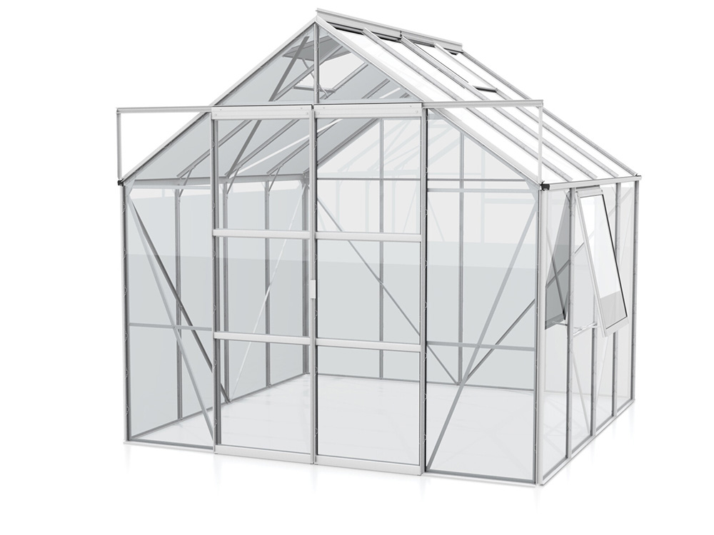 Le cadre est en aluminium anodisé durable et rempli de verre de sécurité de 3 mm, parfait pour des années de plaisir croissant. En option, vous pouvez opter pour une fondation en acier solide, qui offre non seulement une base stable mais permet aussi un assemblage facile !