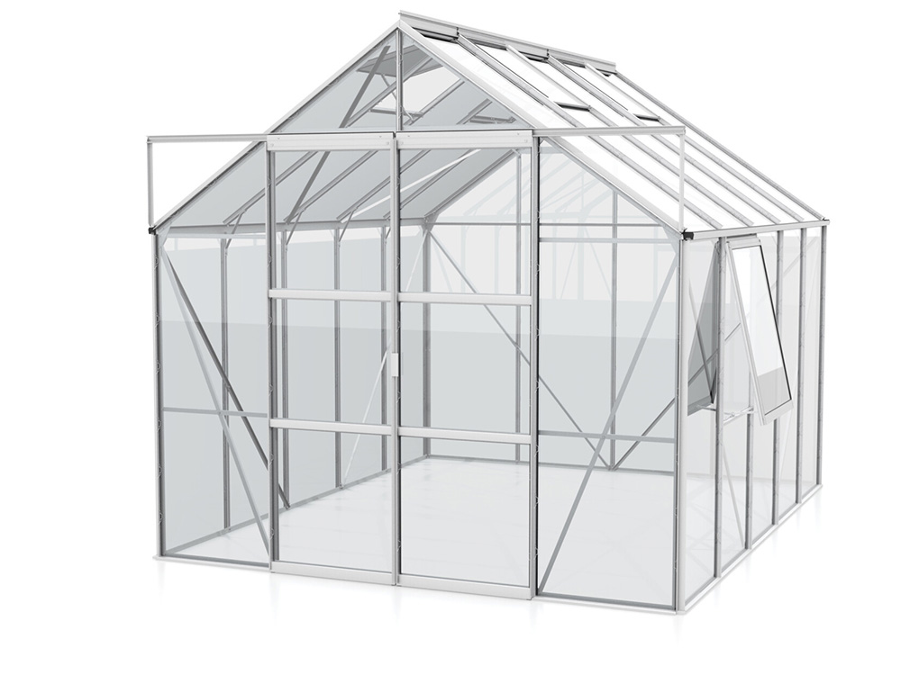 Le cadre est en aluminium anodisé durable et rempli de verre de sécurité de 3 mm, parfait pour des années de plaisir croissant. En option, vous pouvez opter pour une fondation en acier solide, qui offre non seulement une base stable mais permet aussi un assemblage facile !