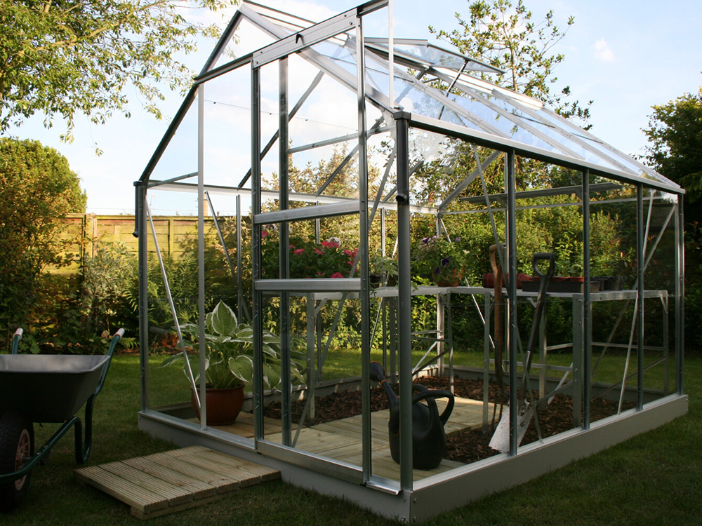 La serre est livrée en aluminium  anodisé durable afin qu’elle ait l’air neuve pour les années à venir. Avec une porte coulissante pratique pouvant être placée à gauche ou à droite selon vos envies, la Vénus offre flexibilité et facilité d’utilisation. Selon la taille, la serre dispose d’une ou deux lucarnes pour une ventilation optimale, et la structure est renforcée de supports de toit.