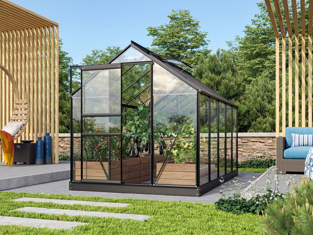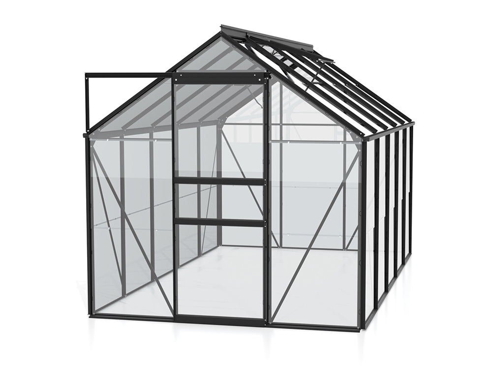 Cette serre de qualité est fabriquée en aluminium recouvert de poudre, ce qui lui confère un aspect luxueux et moderne ! Grâce à la porte coulissante, qui peut être placée à gauche ou à droite selon votre choix, vous bénéficiez d’une facilité d’utilisation et d’une flexibilité optimales. Selon la taille, la véranda dispose d’une ou deux puits de lumière pour une bonne ventilation et la structure est renforcée par des supports de toiture.