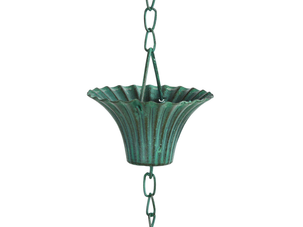 L’eau peut être recueillie au fond de la chaîne dans un tonneau de pluie ou un élément aquatique. Si désiré, vous pouvez suspendre plusieurs colliers les uns sous les autres.