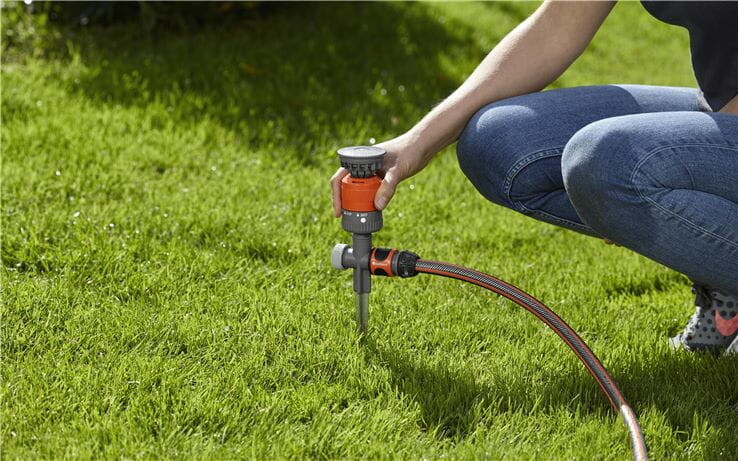 L’arroseur circulaire Comfort de Gardena peut arroser une surface allant jusqu’à 225 m² et a une portée allant jusqu’à 8,5 m. L’arroseur de pelouse dispose de réglages sectoriels qui peuvent être réglés par échelons de 45°, 90° à 360°.