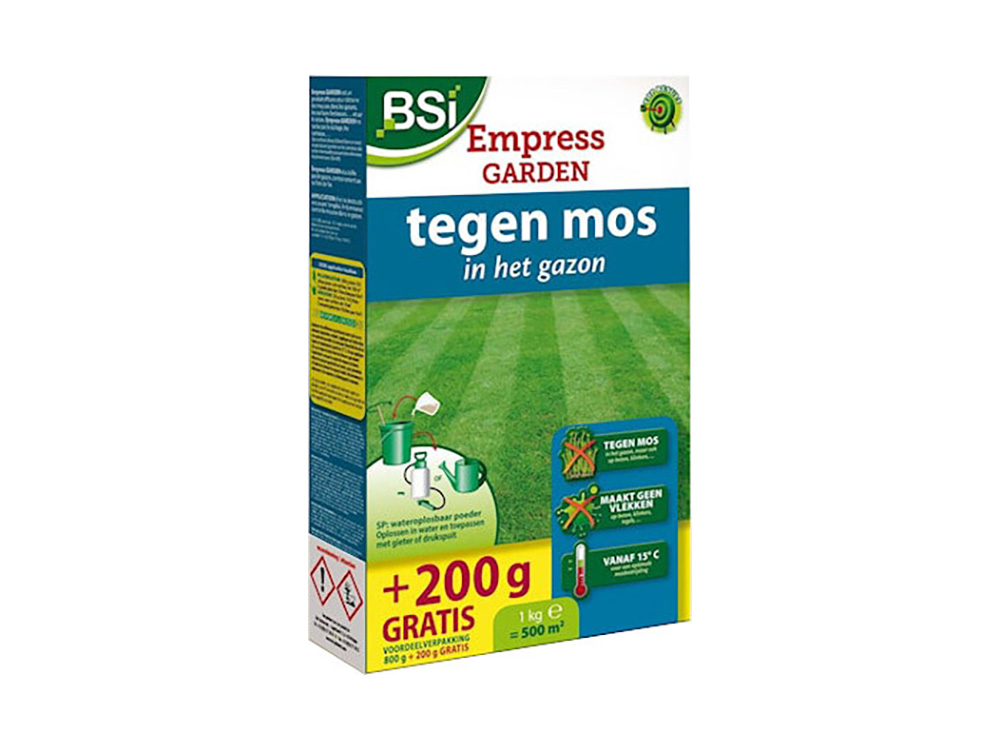 Le jardin BSI Empress combat la mousse dans la pelouse, mais aussi sur le béton, les pavés,... La poudre est soluble dans l’eau et peut être distribuée avec l’arrosoir ou le pulvérisateur à pression.