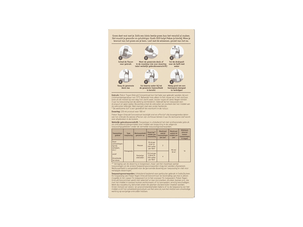 Combattez rapidement et efficacement les mauvaises herbes annuelles entre les graviers et sur les terrains non pavés avec Pokon Contre les Mauvaises Herbes Concentré. Le produit tue toutes les parties aériennes des plantes indésirables telles que les orties, l'oseille, les chardons et le trèfle, et peut également être utilisé contre la mousse.