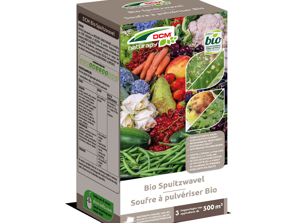 Le DCM spray de soufre Bio, un fongicide de contact préventif pour lutter contre l’oïdium, la maladie par épilation de grêle et la gale.