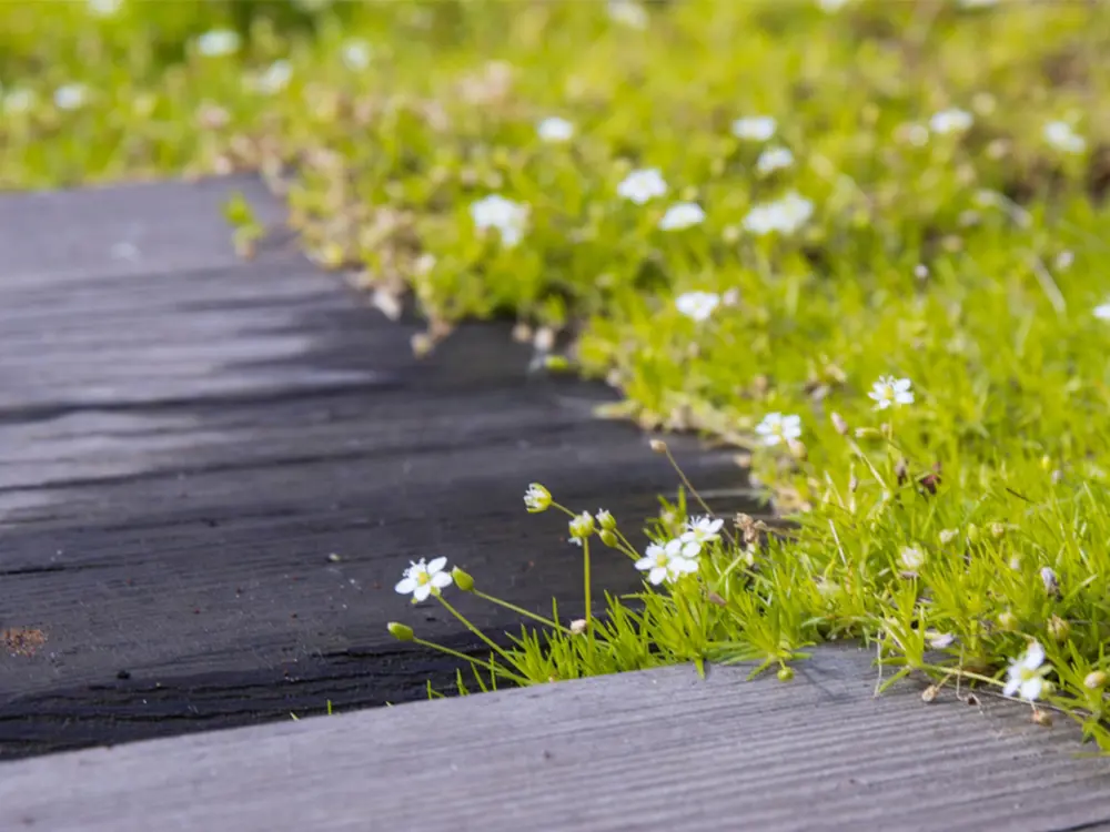 Gelukkig zijn er voor kleinere ruimtes, zoals tuinkamers of stadstuinen, enkele interessante alternatieven. Altijd groene bodembedekkers die, zij het soms beperkt, betreden kunnen worden, vormen een goed alternatief. Deze planten doen het doorgaans uitstekend in de zon op een humusrijke en licht vochtige bodem.