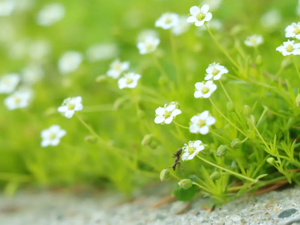 Deze bodembedekker bloeit tussen mei en augustus en wordt bedekt met talloze kleine witte bloemen. Met een maximale hoogte van slechts 5 cm is het een compacte en sierlijke plant. Door zijn dichte groeiwijze lijkt het bijna op een zacht, mosachtig tapijt, waardoor het een uitstekend alternatief is voor traditioneel gras. Het is ideaal voor kleine gazons en past ook goed in rotstuinen of tussen de voegen van flagstones en stapstenen. Er bestaat zelfs een opvallende geelgroene variant, de Sagina subulata 'Aurea'.