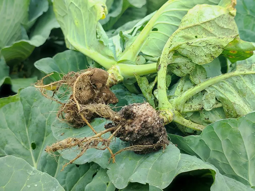 La hernie du chou causée par le champignon Plasmodiophora brassicae, est une maladie grave pour tous les types de choux tels que le brocoli, le chou chinois, le chou-rave, etc. Cette maladie provoque des excroissances sur les racines des choux, qui pourrissent par la suite. Ensuite, par temps chaud, les feuilles deviennent molles parce que les racines ne peuvent pas absorber suffisamment d'eau, et une décoloration typique, semblable à celle du plomb, se produit. Les plantes poussent moins et n'arrivent pas à maturité.