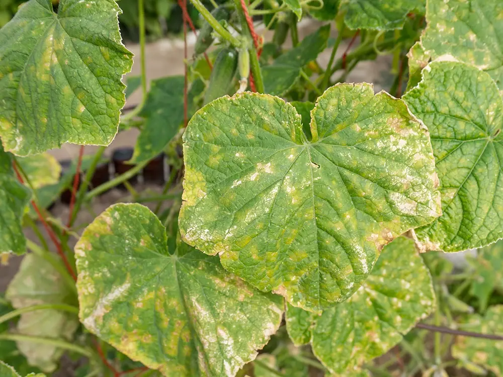 L'oïdium est présent sur les pois, les herbes fraîches, les concombres, les carottes, les panais, les choux de Bruxelles, les salsifis, les tomates et les courgettes, entre autres. Dans le potager, les mesures préventives consistent à respecter une grande distance de plantation et à éviter l'humidité excessive.