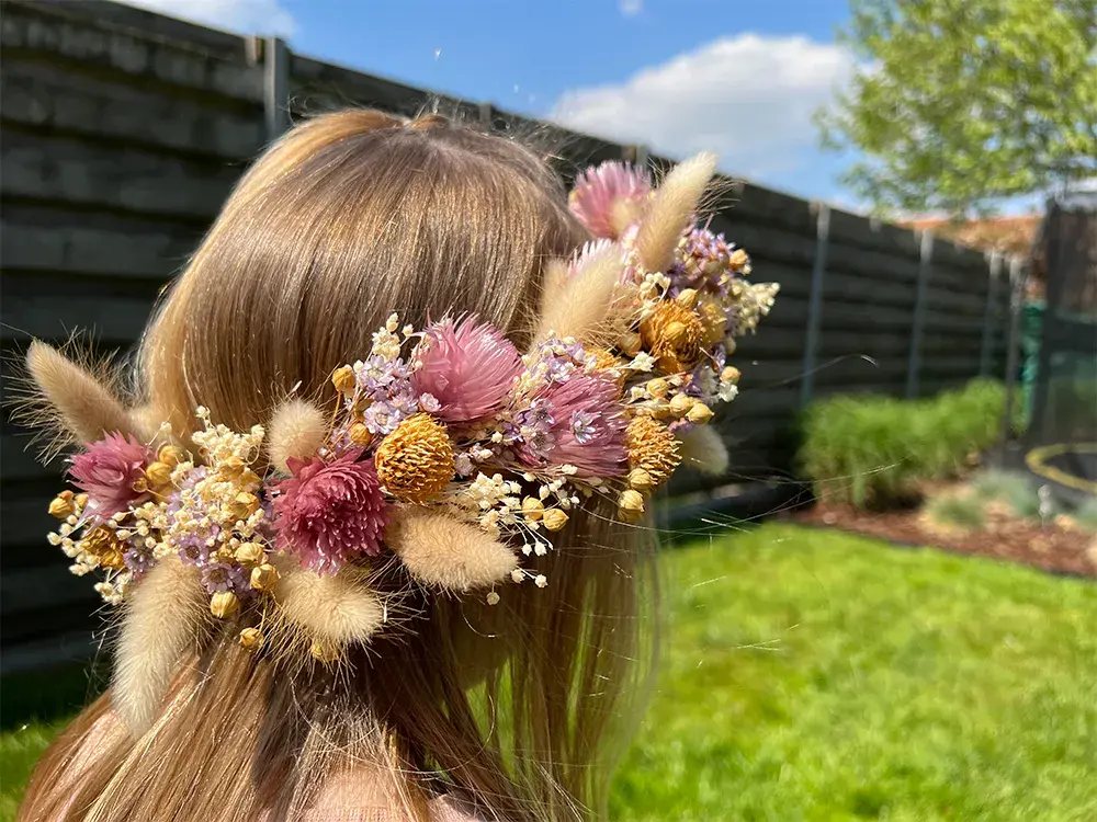 Toutes les princesses méritent une couronne. C'est pourquoi cette semaine, nous allons réaliser une magnifique guirlande de fleurs pour vos cheveux. L'accessoire parfait pour une communion, un mariage ou tout simplement parce que vous faites un pique-nique au soleil et que ça fait joli. Laissez ces bandeaux ennuyeux dans vos cheveux derrière vous cet été.