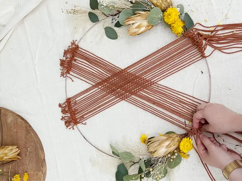 Astuce: Vous aimez aller un peu plus loin? Faites un travail de macramé avec les morceaux de ficelle détachés qui pendent sous le cercle.